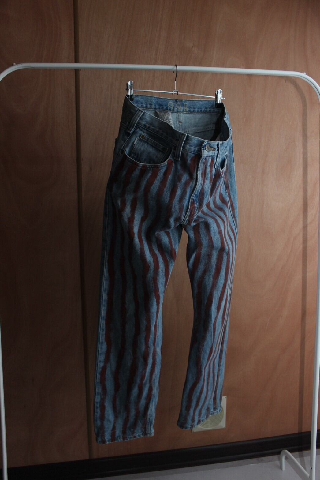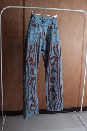 ※デニム専用インク、耐水性アクリル絵の具を使用していますがお洗濯の際の色落ち、色移りの保証はできかねます。